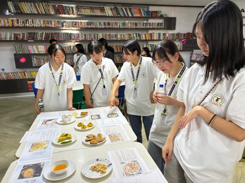 学園生たちは初めて見るインドの伝統料理に興味津々。一品ごとに日本語の説明が添えられており、食文化を学ぶ良い機会となりました。
