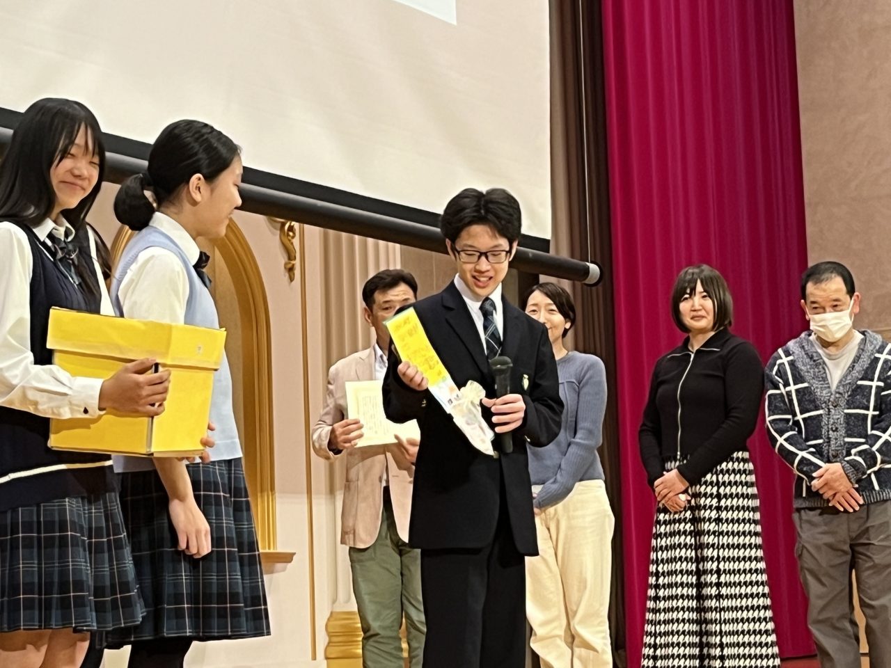 委員長の高2荒上くんは、『プレゼントは、委員会のみんなで案を考えて、学級や学年のみんなにもメッセージを書いてもらった学年もあり、それぞれ協力し合いながら作りました。ハートフルさんへ感謝を形にして伝えることができて大成功したと思います。ハートフルさん、いつもありがとうございます。』という感想を述べてくれました。