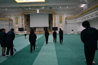 そして、午後の作務修行では、宗教施設の中心部と言える礼拝堂の中に入らせていただき、参加者全員で礼拝堂作務を行いました。