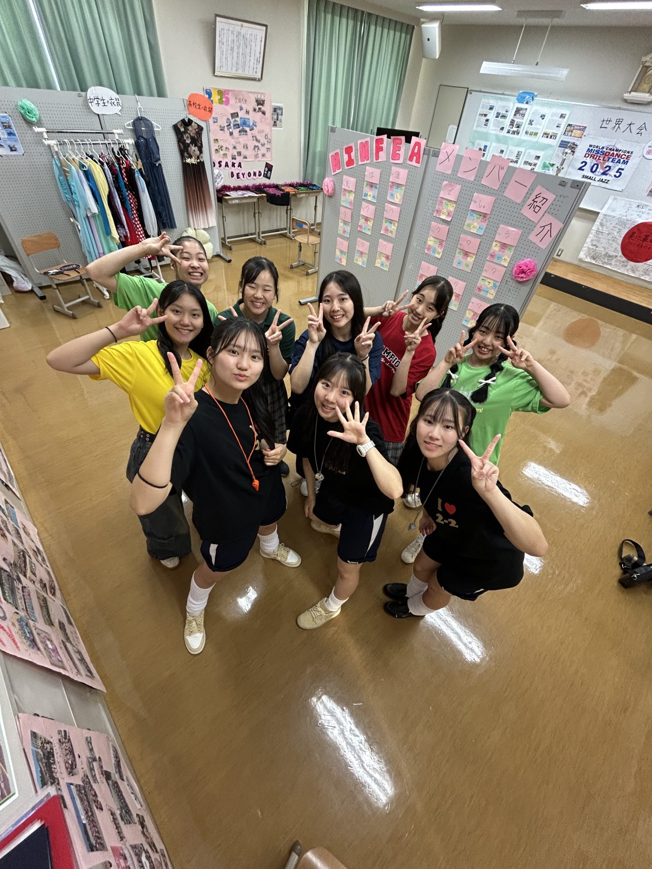 展示では、私たちの活動を知っていただけるような展示をしました。ダンス部OGの先輩も、ダンス部以外の先輩方も、写真を見ながら学園生時代を思い出してくれたり、カラフルな衣装に興味を持って試着してくれた女の子がいたり、他己紹介クイズを楽しんでくださる保護者の皆様や学園生がいたりして、それぞれ、楽しんでいただくことができました。みなさまからの、「応援してるよ。頑張ってね!」という言葉がとても嬉しく、多くの方々に支えられていることを実感しました。