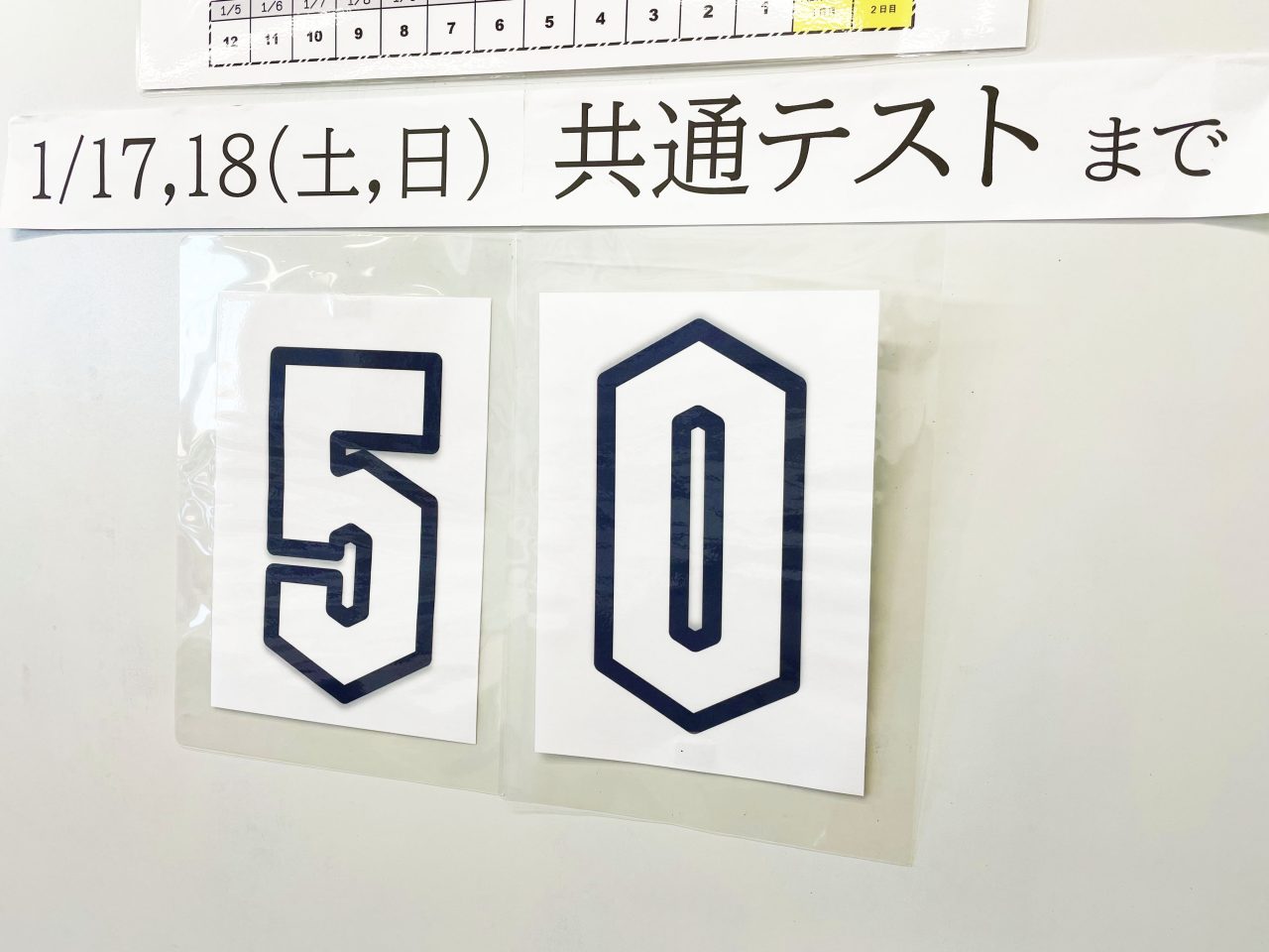 共通テストまであと50日 2025.11.28 進路指導 11月28日(金)、大学入学共通テストまであと50日となりました。 先日、高3の希望者を対象に、共通テスト形式の最後の模試を実施しました。本番の時間割に近い形で、2日間かけて受験しました。 入試までの時間は限られています。目標達成のために必要なことをよく考えて、絞り込んでいきましょう。