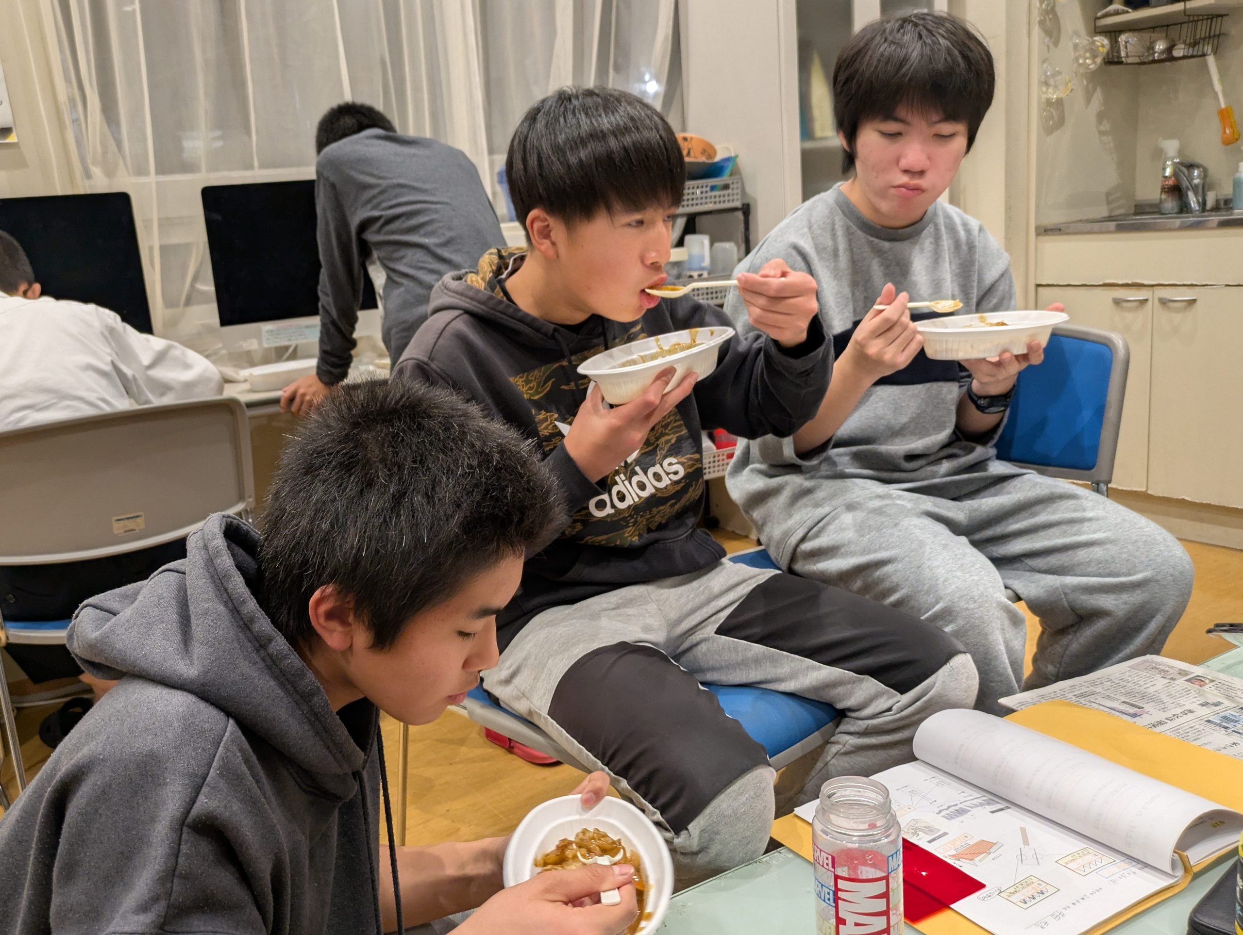 男子寮では、お米を炊いて、寮母さんが心をこめて手作りしてくださったカレー、